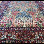 The scene is framed by a floral border interspaced with what looks like doves. The many branches of the tree convey that all of earth’s life is connected. Another interpretation is that the tree of life represents resurrection and immortality, a concept prevalent in all religions. The tree could possibly be the Haoma tree, important in Zoroastrianism.This is a rare rug  with corresponding high collectability and future value. This rug would do better as a mural tapestry and would bring life to any space, as the design suggests.